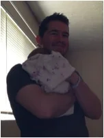 Bryce: By 12:15 her pressure waves had begun and they were quite uncomfortable for Chanae. We had set a goal to have a natural childbirth and the pain of the pressure waves had me worried that Chanae may not be able to go through with it if this was her reaction to the beginning of pressure waves. I began to time them using my IPhone. It was difficult because I couldn’t always tell when a new contraction was starting. I called Kelly (our doula) to let her know that Chanae's water had broken and that we would be going back to bed to wait it out ‘til morning. My thoughts were that Chanae would be able to comfortably dilate under the protection of sleep. Kelly thought this would be a good idea too. After hanging up with her, I quickly arranged to listen to a hypnobabies track and Chanae and I got back in bed. I held her close and tried to time the pressure waves. She whimpered in pain and wasn’t able to hold still. She got back up and went back into the bathroom where she had leaked all through her pad. She was really hurting. I began to panic just slightly because I felt that the plan we had made wasn’t working out and I couldn’t handle soothing Chanae on my own. I called Kelly and asked her to come, and she arrived around 12:30.